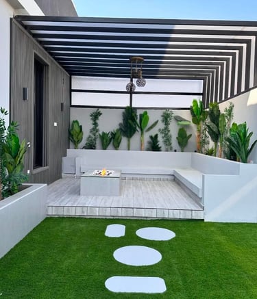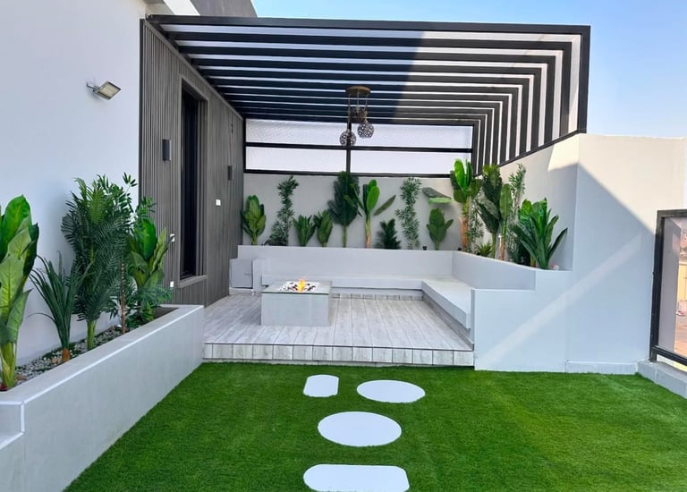 نجيل صناعي. نوافير وشلالات. بديل خشب خارجي. احواض زرع.